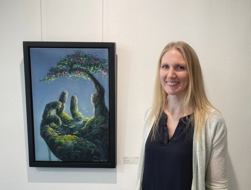 Kunstpreis Schloss Filseck 2024 PublikumspreisTuscany Mural – AdelmannsfeldenWorkshopAugenschmaus und Herbstgemüse Geislingen 2022Christina Fink and the artwork The Encounter at Schloss Filseck in Uhingen 2022Christina Fink in der Buchhandlung Barbarossa in GöppingenBirch Trees Mural