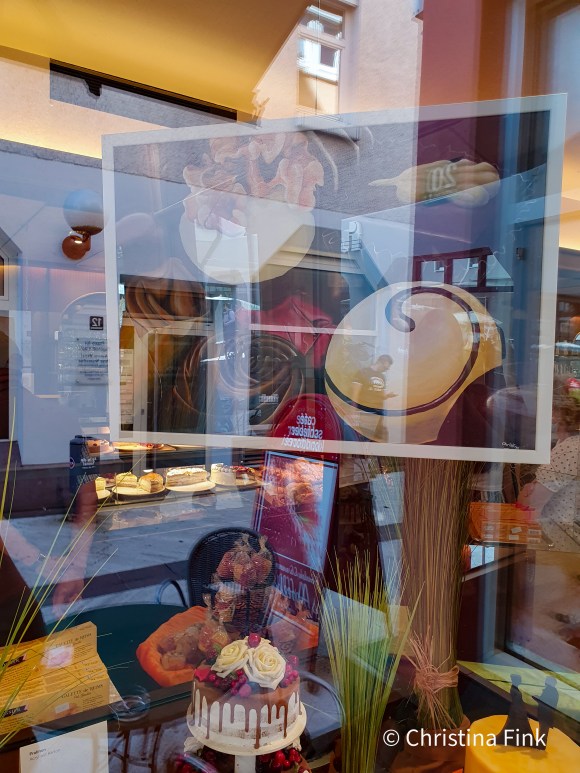 Mein Pralinenbild wurde für die “Fenster zur Kunst” Aktion für das Cafe Schieber in Aalen ausgewählt. Hier hängt es nun bis zum 30.09.21 im Schaufenster.